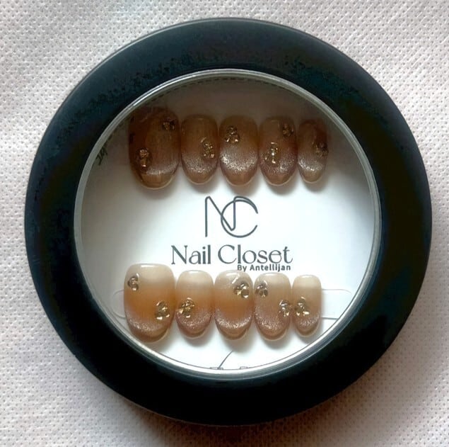 キャラメルカラーとジュエルの輝きで大人の指先に。